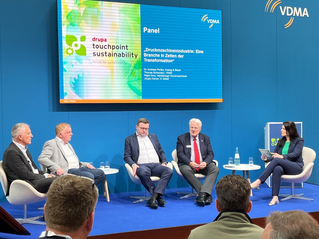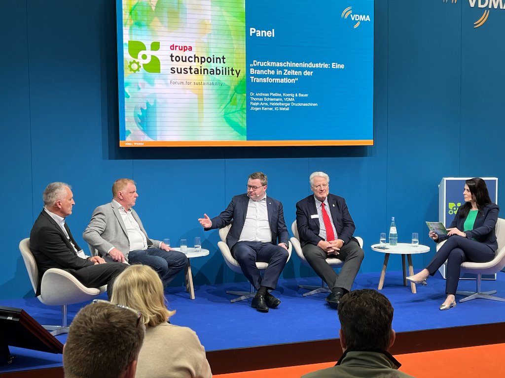 Die Themen des Positionspapiers werden heute auf der drupa im Rahmen einer Podiumsdiskussion erörtert. Teilnehmer der Podiumsdiskussion sind Jürgen Kerner, Zweiter Vorsitzender der IG Metall, Ralph Arns, Betriebsratsvorsitzender Heidelberger Druckmaschinen AG, Thomas Schiemann, Geschäftsführer des Fachverbandes Druck- und Papiertechnik im VDMA, und Dr. Andreas Pleßke, Vorstandsvorsitzender Koenig & Bauer AG.