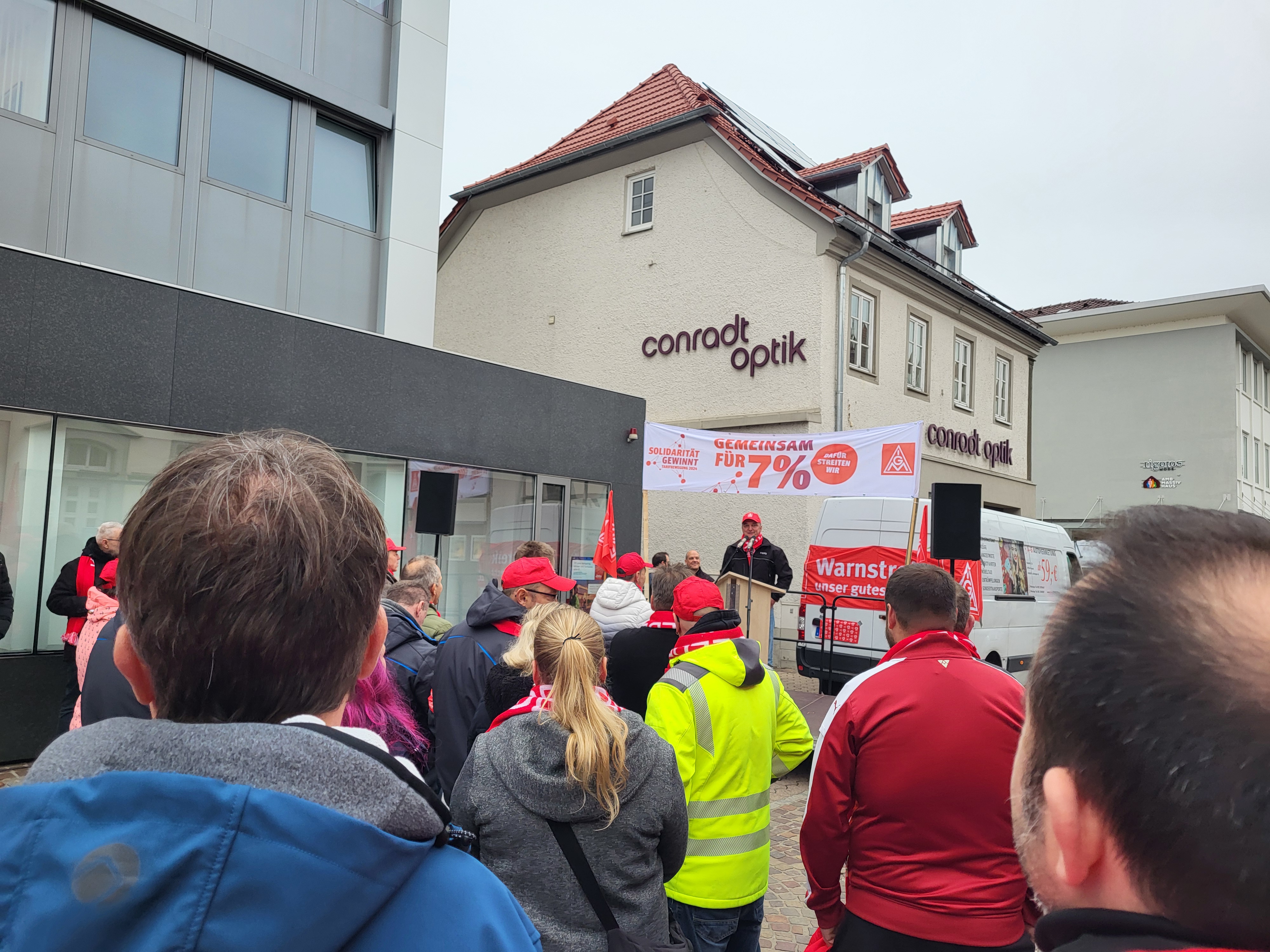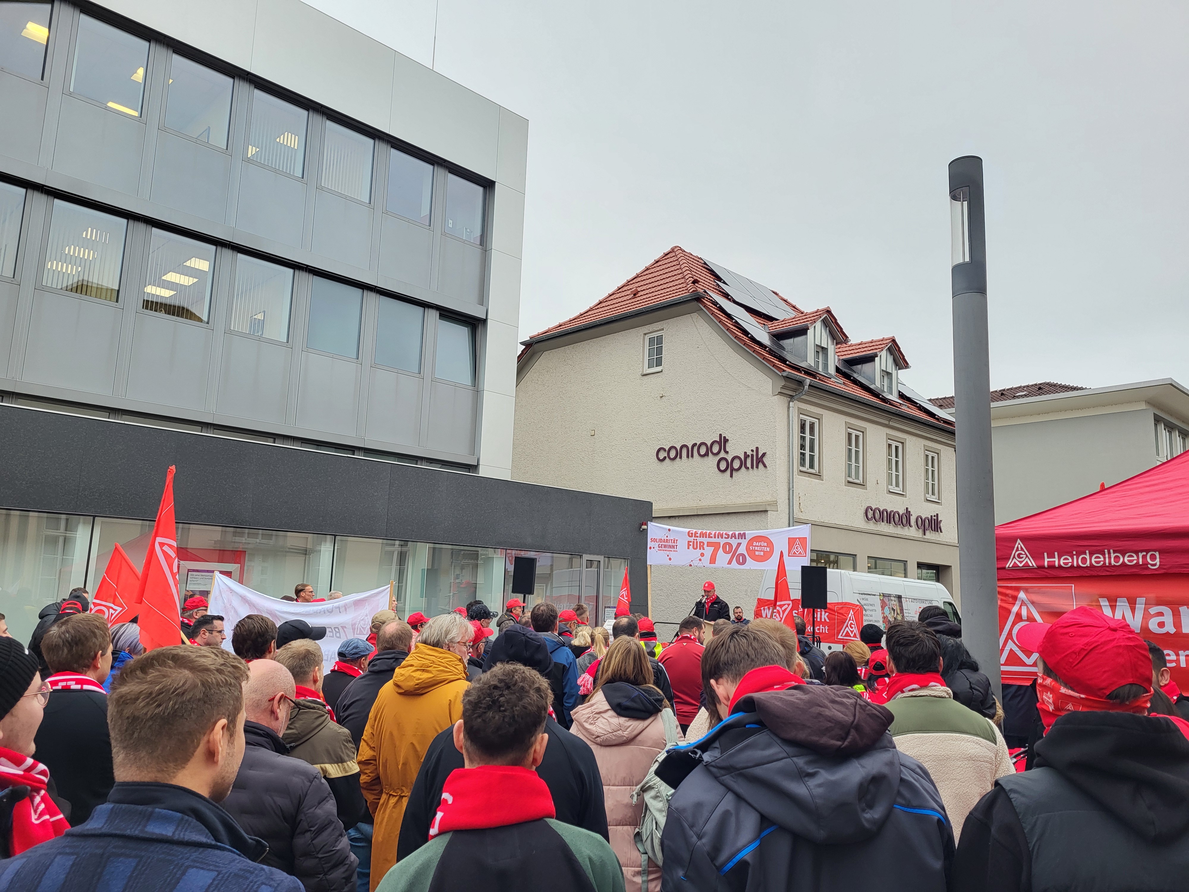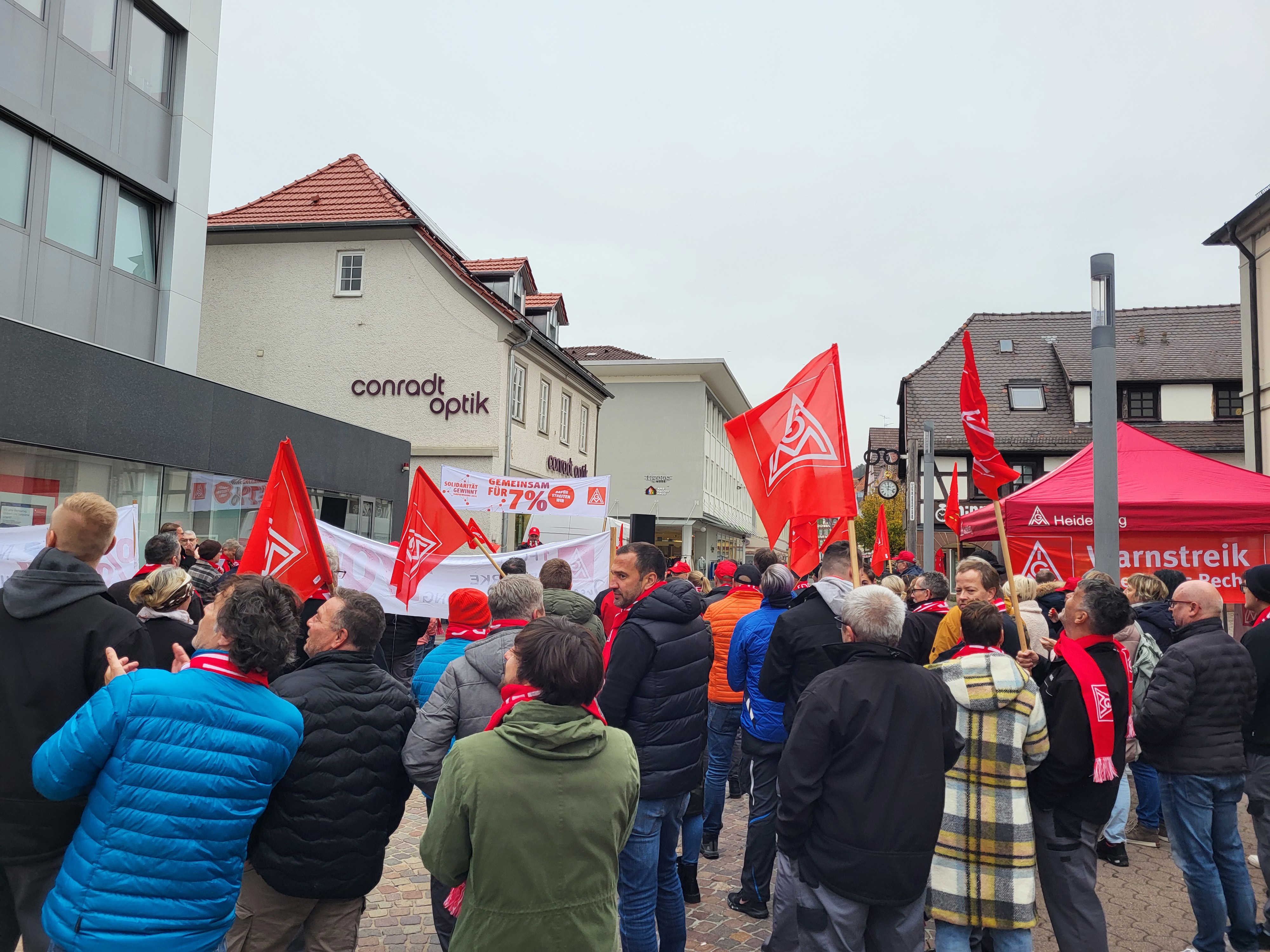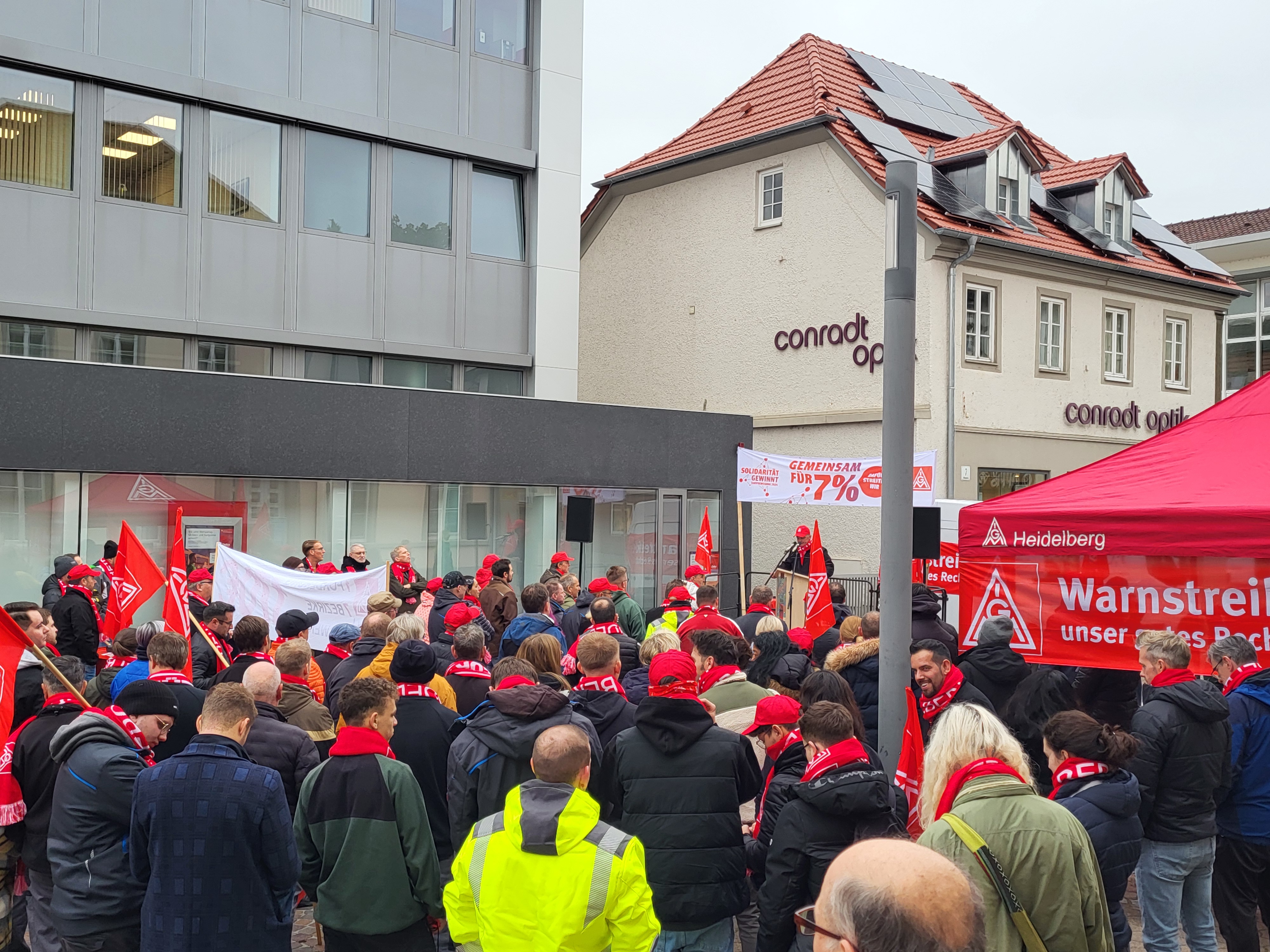 Mosbach - Am heutigen Freitag hat die IG Metall Heidelberg erneut zu Warnstreiks aufgerufen. Den Schwerpunkt bildeten diesmal die Betriebe in Mosbach und der Region. Etwa 170 Beschäftigte der Ademco 1 GmbH, der FIBRO GmbH sowie von Fibro Läpple Technology GmbH trafen sich zu einer Kundgebung in der Mosbacher Innenstadt.